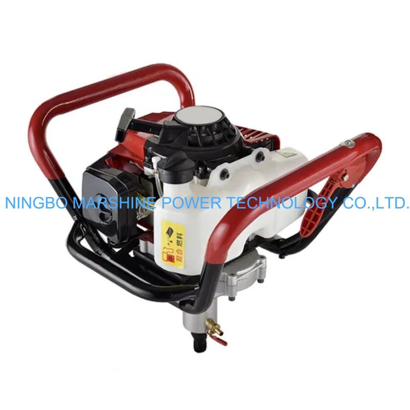 Equipada con un motor de gasolina monocilíndrico de 85 CC y 2,3 KW, refrigerado por aire, esta máquina perforadora de perforación tipo mochila MARSHINE puede proporcionar la potencia adecuada para perforar suelo, roca y sustratos de hormigón o mixtos.