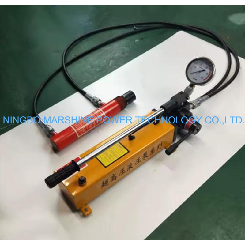 La bomba hidráulica manual pequeña de doble circuito MARSHINE CP-800S es un instrumento profesional de doble circuito que se puede conectar para su uso. También se puede utilizar para circuito dual simultáneamente o por separado y el circuito múltiple se puede unir para ejecutar una presión estable. Esta bomba hidráulica manual tiene una presión de trabajo máxima de 70 MPA, lo que la hace sobresalir en aplicaciones como engarzar, doblar o enrollar que requieren un rendimiento potente.