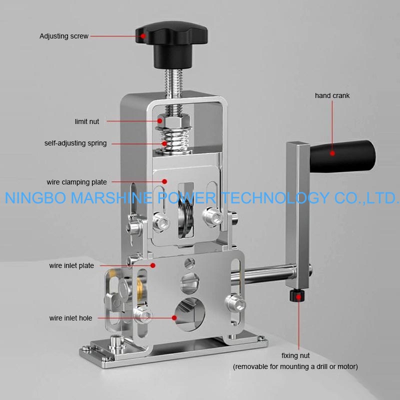 Esta máquina peladora de cables portátil con marco de acero con manivela manual MARSHINE se puede utilizar para pelar el aislamiento de los cables de desecho y obtener material de cobre valioso.