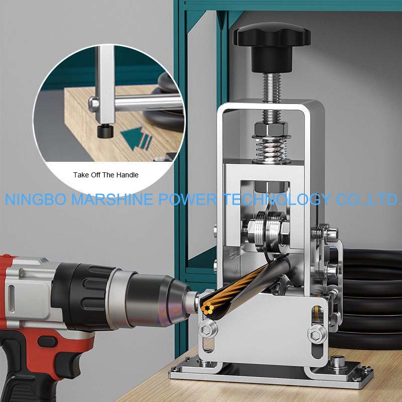 La construcción de marco de metal de alta calidad pero resistente ofrece a esta máquina peladora de cables portátil con marco de acero con manivela manual MARSHINE extrema durabilidad, estabilidad y resistencia al desgaste en condiciones de trabajo difíciles.