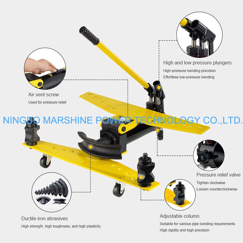 Este equipo de doblado de tubos hidráulico de tipo manual MARSHINE SWG permite una variedad de matrices de doblado para varios diámetros de tubos utilizados en trabajos de construcción y eléctricos, etc.